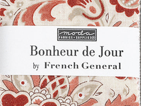 French General began designing fabric and quilt patterns for Moda in 2008 with their first collection, Rouenneries. Since then, Kaari and JZ have designed over 30 collections and 60 quilt patterns. Filled with old French florals, petite prints, stripes and borders, the French General fabric collections are inspired by historical document fabrics but colored in a fresh new way. Each collection features a shade of red, which has become synonymous with the French General brand.