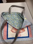 The bag is fully quilted for a soft but sturdy feel, making it both practical and cozy. Wide woven straps sit comfortably on your shoulder, perfect for carrying quilting supplies, books, handwork projects, or everyday essentials. It’s a wonderful blend of usefulness and handmade artistry.